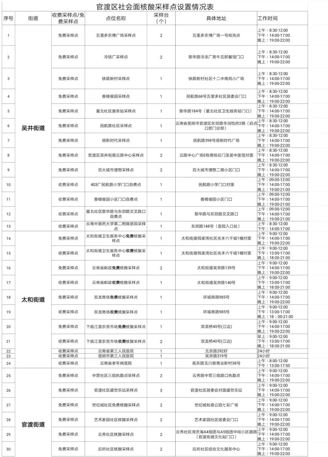 为方便辖区居民就近就便进行核酸检测,2022年11月23日—25日护国街道辖区免费核酸检测采样点位如下,请居民群众自行前往进行检测。
