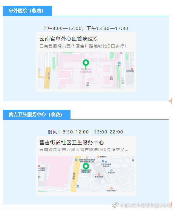 昆明三一一医院核酸检测点(收费)