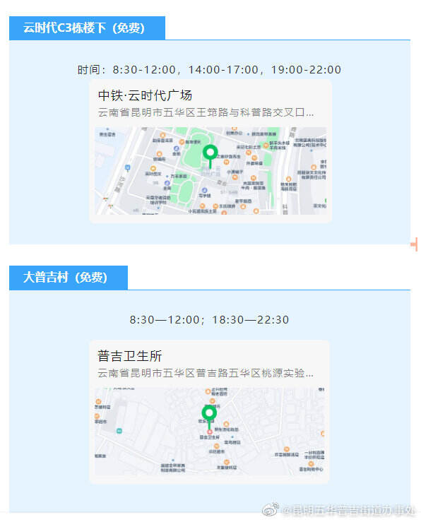 红云街道核酸检测采样点位