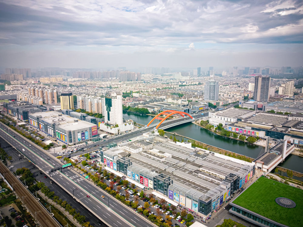 这是11月11日拍摄的中国轻纺城市场(无人机照片)。新华社记者 江汉 摄