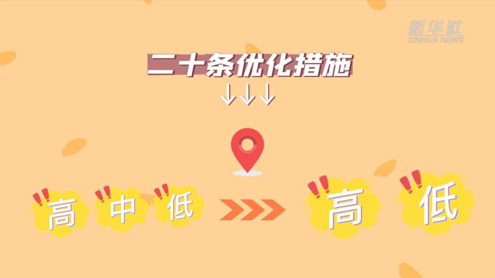 国务院联防联控机制综合组近日公布了《新冠肺炎疫情防控核酸检测实施办法》《新冠肺炎疫情风险区划定及管控方案》《新冠肺炎疫情居家隔离医学观察指南》《新冠肺炎疫情居家健康监测指南》4个文件,进一步指导各地各部门做好疫情防控工作。二十条优化措施将风险区由“高、中、低”三类调整为“高、低”两类。不同风险区域划定的标准是什么?分别需要采取哪些防控措施?点击视频,为您解答。