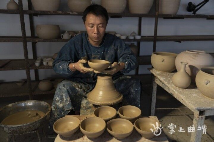 一边研究着脚下的土地,一边走向更远的地方。2014年以来,赵青松带着在陆良采集的泥料到淄博、南京、景德镇、建阳、建水、玉溪、宜良、大理、华宁、临沧,和业内大师及匠人一起实验、比对泥料在烧制过程中不同配比对温度、硬度、及膨胀系数的变化,研究陆良泥料釉料的独有特性,研究多种窑炉的烧成方式以及不同窑炉对产品烧制所产生的差异,研究福建建阳油滴天目、兔毫天目、木叶天目等釉料与曲靖本土黑釉的相同点与差异性,并学习云南少数民族陶艺技术。通过不断地寻找探索,他找寻到陆良本土20余种新型原矿釉料,再通过对这些新材料的组合配比烧制研究,至目前增加了80余种釉料颜色,其中30多款釉色在烧制出来后的效果独具本土地域色彩,为陆良本土陶艺新产品开发奠定了良好的基础。