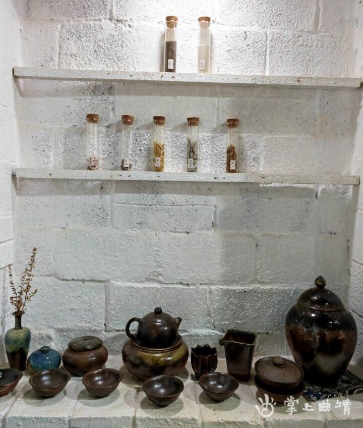 系统研发,简单四个字,却是赵青松投入了全部精力与金钱的倔强践行。要研发,首先得深入了解当下,赵青松便开始遍访脚下的土地。在参观他工作室的时候,他指着一排排装着各色泥土的瓶瓶罐罐,娓娓说着陆良的泥土。陆良土壤沿等高线呈带谱状分布,海拔在2400米以上的为棕梗;海拔在2400-1950米为棕红梗、红梗、黄梗、紫红土等;海拔在1950-1860米的盆地边缘地带为第三纪始新统、上新统沉积物,颗粒较粗含沙多 ……听着他如同说自家亲戚一样说着陆良的泥土,再看他那一堆在不同条件下烧制出的“失败品”,可以想见系统研发于他这样一个人而言,是多么艰辛卓绝的选择,他一个人,在做着一座城的事。