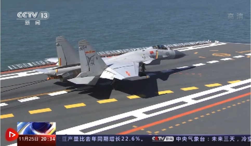 2012年11月23日,第一型舰载战斗机歼-15在辽宁舰首次完美着舰,中国战机实现了从陆地向海洋的跨越。