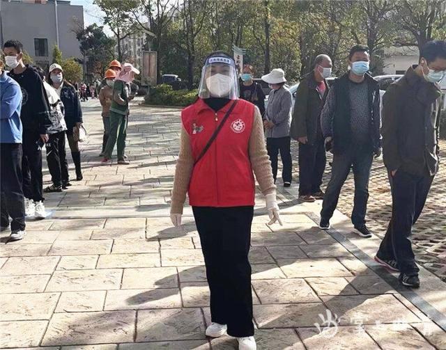 今年10月下旬,她因有事来曲靖,正想着回重庆时,那边因疫情严重回不去了。正当她想找点有意义的事情做时,无意中听在曲靖的一个亲戚说,一个微信群正在招募抗疫志愿者。何天英就报了名,就这样,她成了一名核酸检测点负责维持秩序的志愿者。
