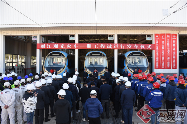 11月28日,丽江观光火车一期工程(丽江轨道交通1号线)空载试运行发车仪式举行,标志着由中国铁建、中国中铁、广州地铁共同投资建设的丽江观光火车一期工程进入空载试运行阶段。接下来,项目公司将按相关规定开展为期3个月的空载试运行,在有序完成初期运营前、正式运营前等安全评估工作后投入正式运营。届时,游客可乘坐“观光火车”欣赏巍峨壮美的雪山、湛蓝如玉的蓝月谷湖水与旖旎奇绝的峡谷风光。