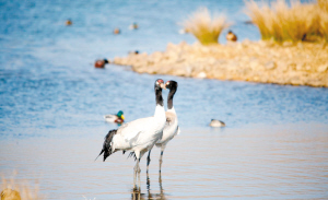 图为在保护区拍摄到的黑颈鹤。