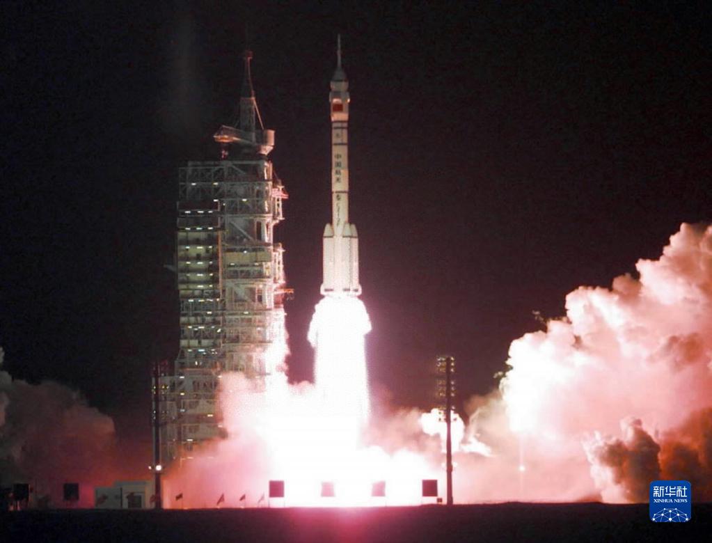 1999年11月20日,中国第一艘载人航天实验飞船神舟一号在酒泉卫星发射中心发射升空。新华社发