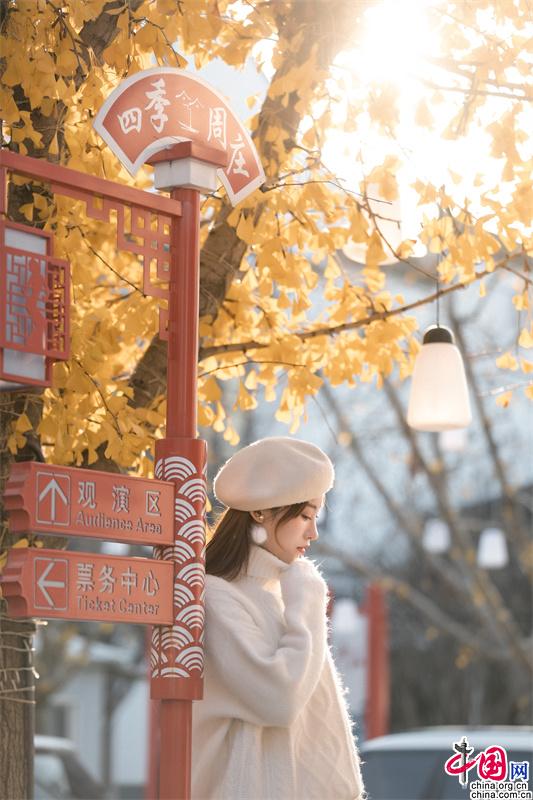 别秋迎冬,把金色落叶收藏。四季周庄门前的银杏如约而至,坐在树下,闲看人来人往。任由大片大片金黄色的银杏叶,翩翩然落在肩头,偶尔伸手接上一片,便接住了江南的浪漫。