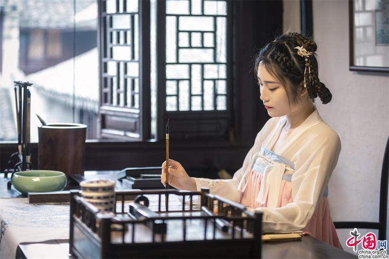 云想衣裳花想容,汉服翩翩至水乡。着一身汉服,踏入历史沧桑的沈厅,走马楼里走一圈,古韵深深,仿佛真的穿越了千年的旧时光。