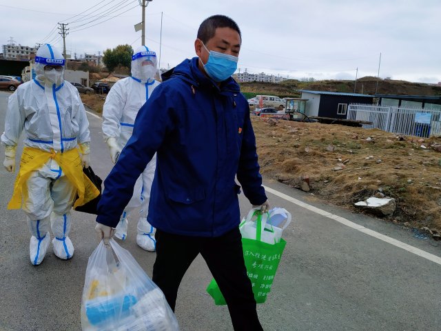 12月1日,清晨8点,气温只有0℃,在昭阳区凤凰街道石头塘社区大厅内,社区党委书记黄河兵正在忙着准备核酸检测所需物品,并将准备好的物品分发到各个核酸检测点负责人手中,确保医务人员能够准时为居民采集核酸。准备工作就序,他又忙前忙后,维持着现场秩序。