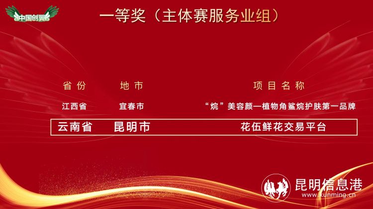昆明信息港讯 记者江枫 近日,第五届“中国创翼”创业创新大赛全国总决赛在山东青岛举行。我省参赛项目在此次大赛中喜获佳绩,其中,服务业组的“昆明花伍鲜花交易平台”获得全国一等奖的好成绩,这也是我省在此项全国赛事上首次获得一等奖。