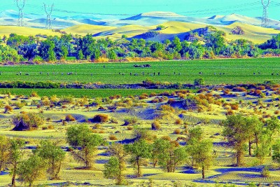 大漠、胡杨、棉田、兵团职工,共同构成一幅和谐美丽的画卷。