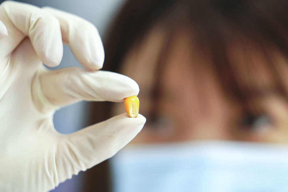 在吉林省宏泽现代农业有限公司实验室内,科研人员展示培育的玉米种子(2022年6月7日摄)。新华社记者 许畅 摄
