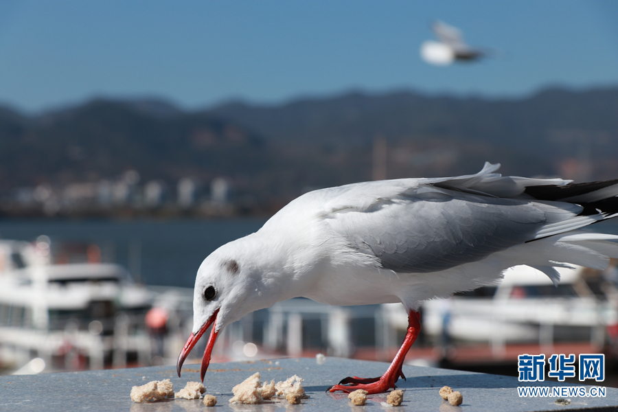 海埂大坝出现的红嘴鸥(11月26日摄)。新华网发(王小羽 摄)