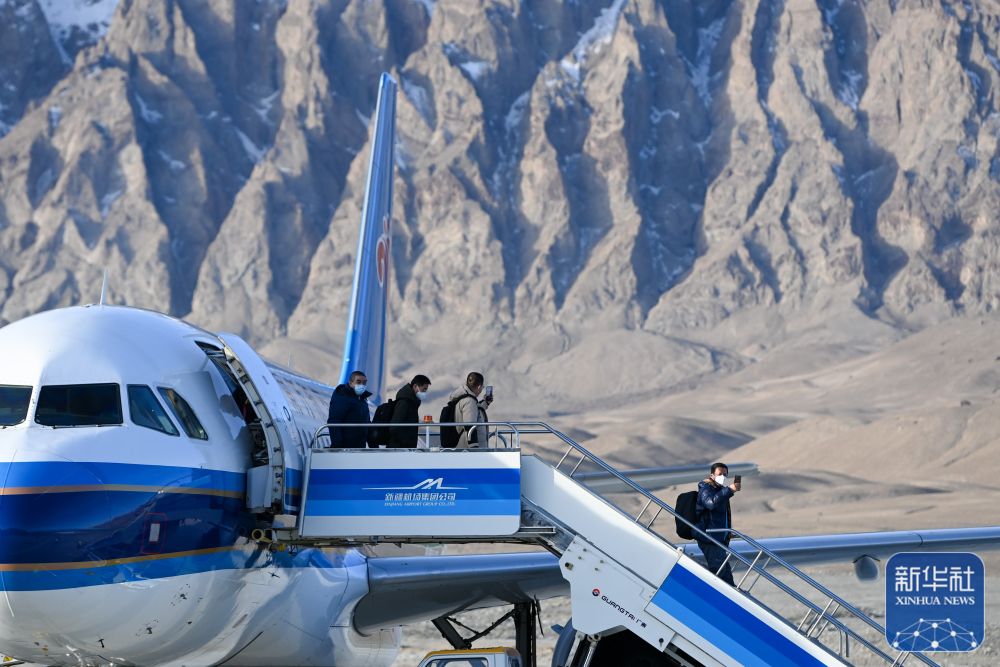 ↑12月23日,首航航班降落在塔什库尔干红其拉甫机场。