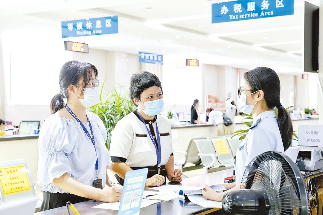 云南省江城县纪委监委把优化营商环境作为监督重点,深入一线,了解惠企政策落实、职能部门工作作风等情况,以强监督推动破解损害营商环境的痛点、难点、堵点。图为该县纪委监委专项督查组深入政务服务办事大厅办税服务窗口,走访了解减税降费、助企纾困、纳税服务等政策落实情况。沈雷 摄
