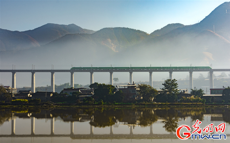 图为复兴号驶过新成昆铁路沙坝安宁河特大桥。田维鹏/摄