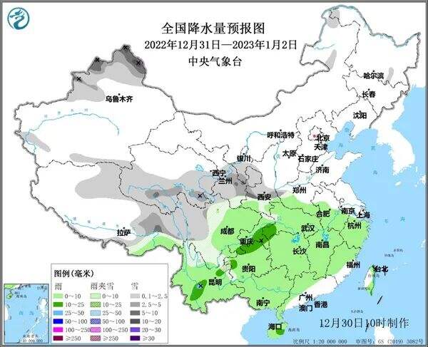 除了降温外,这股跨年冷空气还会给西北、西南等地带来阴雨雪天气。贵州西部、云南东北部等地的部分地区有雨夹雪,高海拔地区有冻雨。