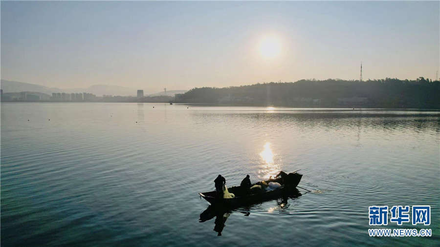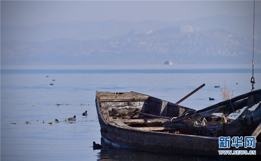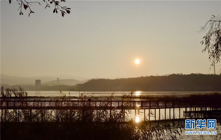 1月7日早晨,在云南大理洱海月湿地公园拍摄到的景色。新华网发(嬴光万/摄)