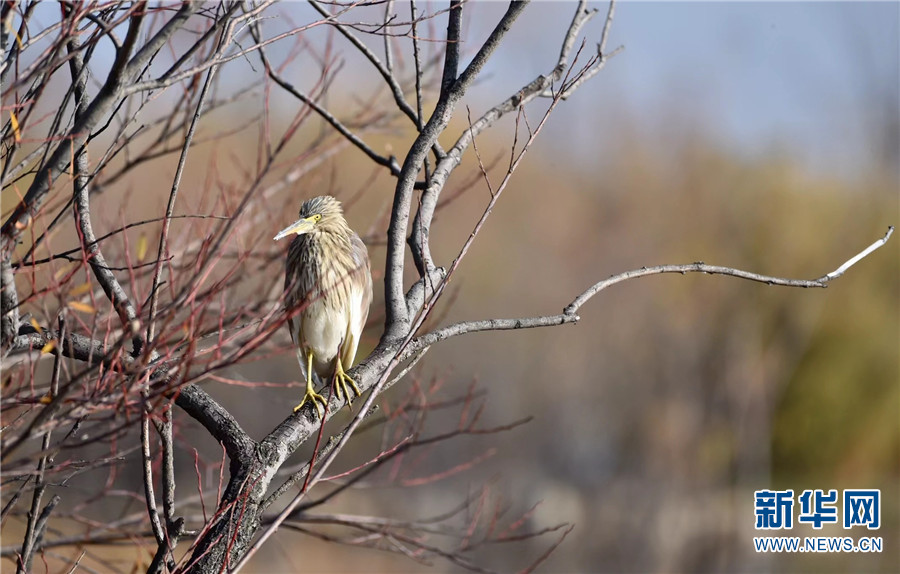 1月7日早晨,云南大理洱海月湿地公园,池鹭立于树上。新华网发(嬴光万/摄)