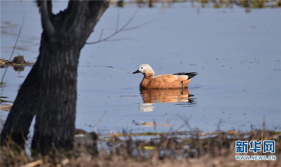 1月7日早晨,在云南大理洱海月湿地公园拍摄到的赤麻鸭。新华网发(嬴光万/摄)