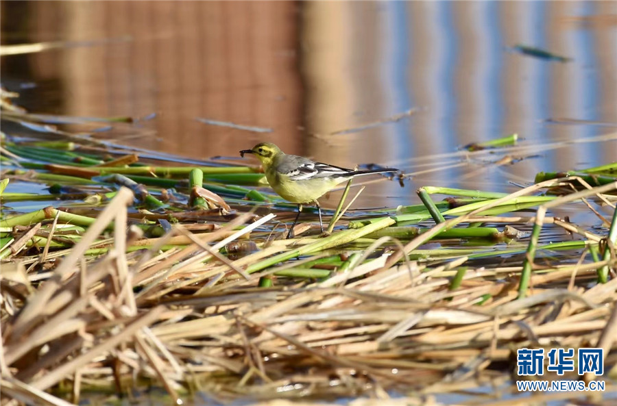 1月7日早晨,在云南大理洱海月湿地公园拍摄到的黄鹡鸰。新华网发(嬴光万/摄)