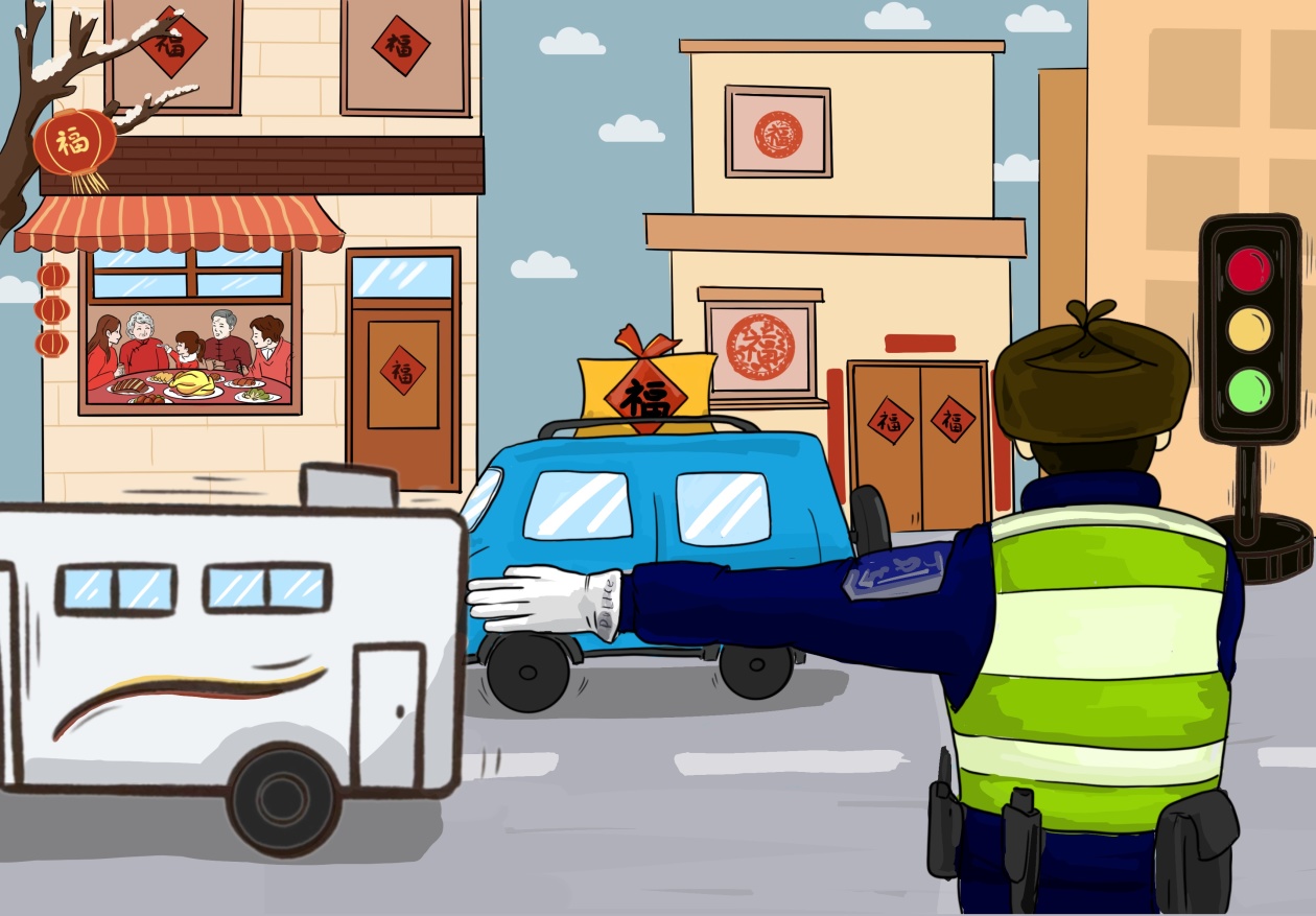 红绿灯下,保障道路畅通