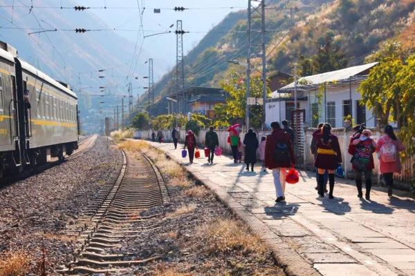 “我们这边就数坐这趟‘慢火车’最方便,票价便宜,大家买年货赶集都坐这趟车。”杨加平笑着说。从元谋西站出来后,杨加平父女兴冲冲地直奔年货集市。晚间,他们一家依旧会乘坐“慢火车”返回黑井。