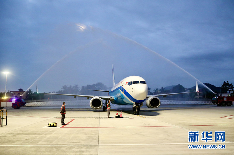 飞机抵达三亚机场。新华网发