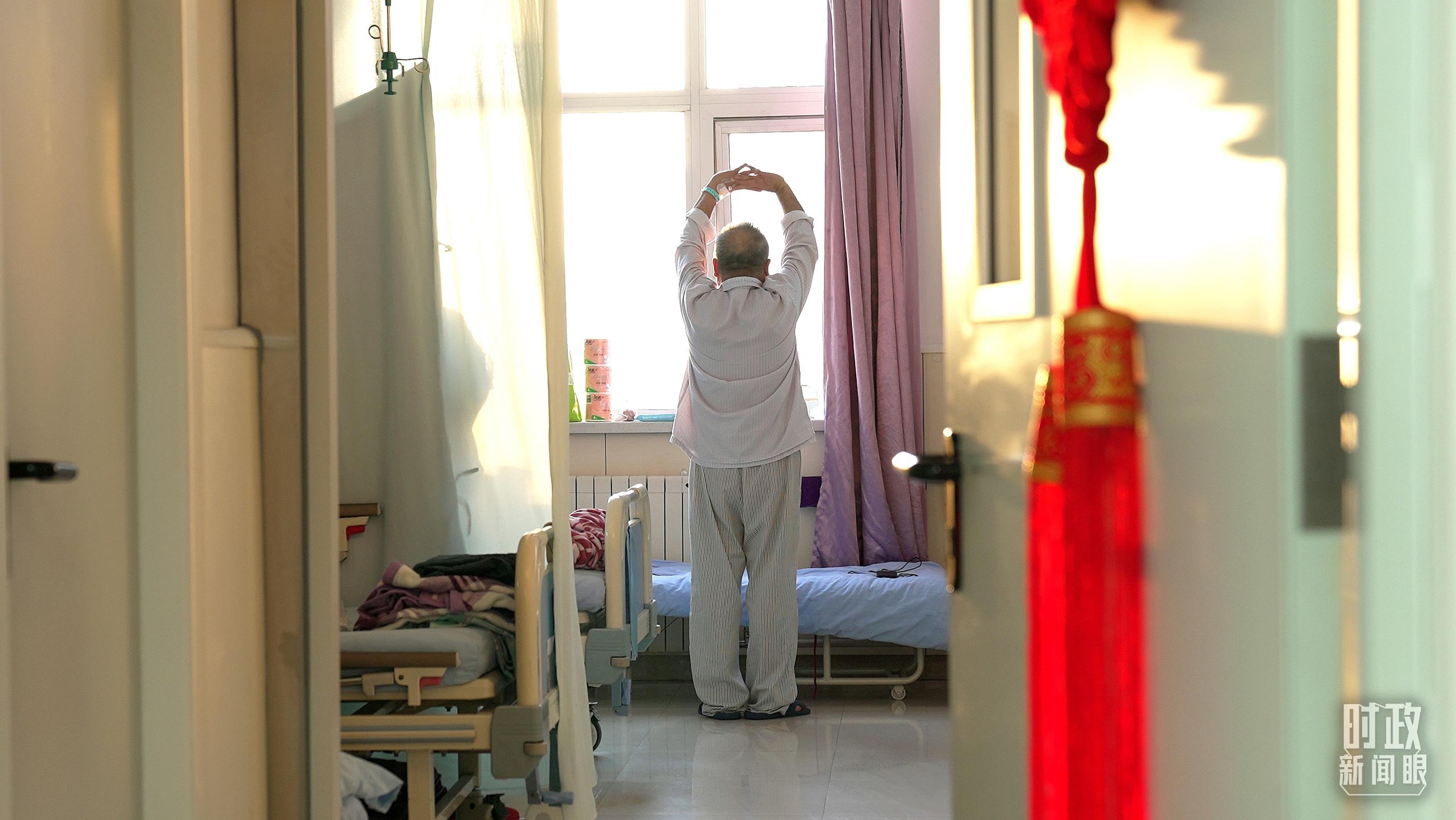 △呼吸内科逐渐康复的患者正在做简单的活动。(总台央视记者刘琦拍摄)