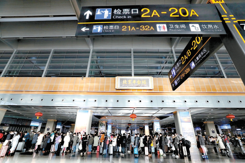 昨天,丰台站通车后迎来首个春运高峰,旅客有序候车乘车。本报记者安旭东/摄