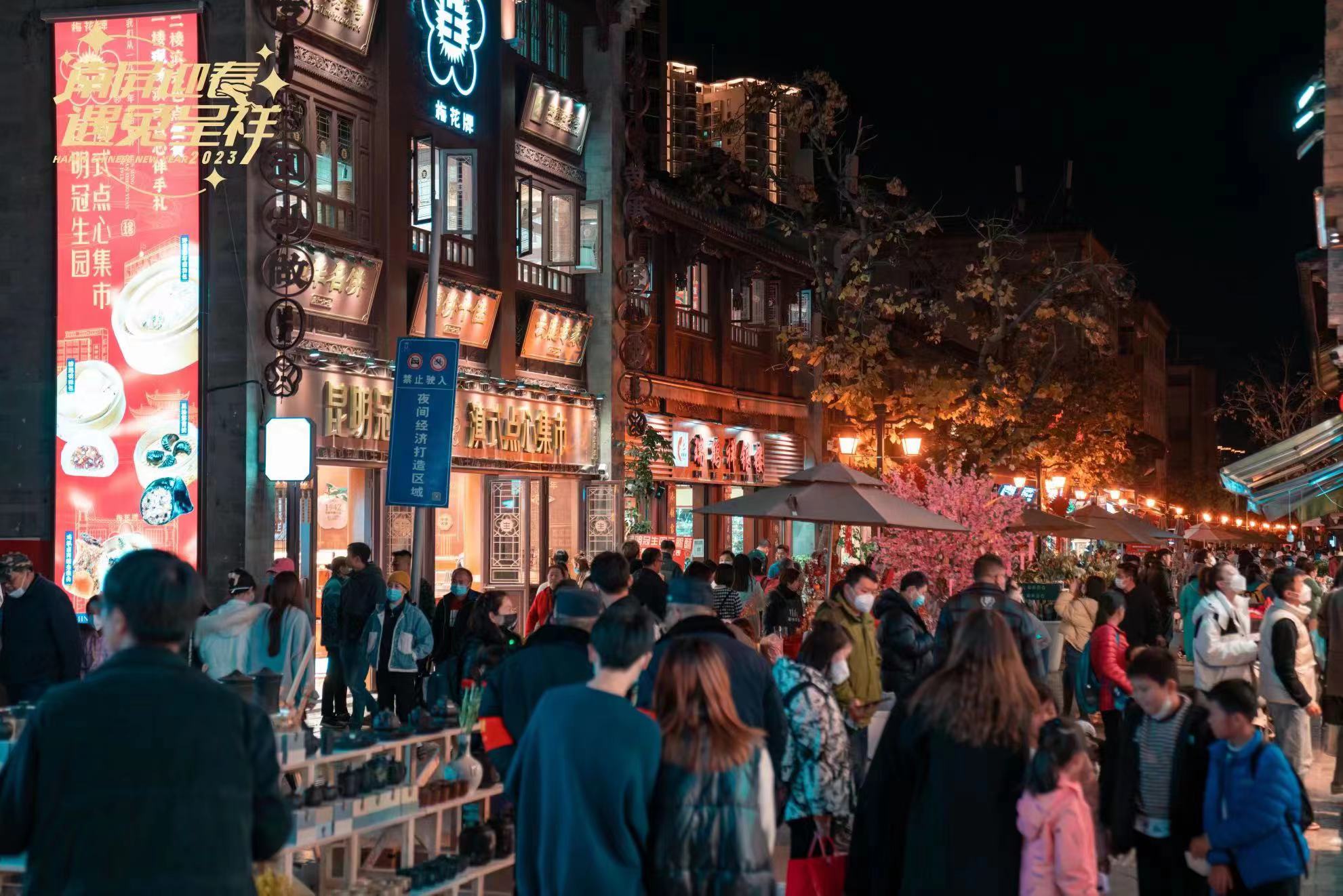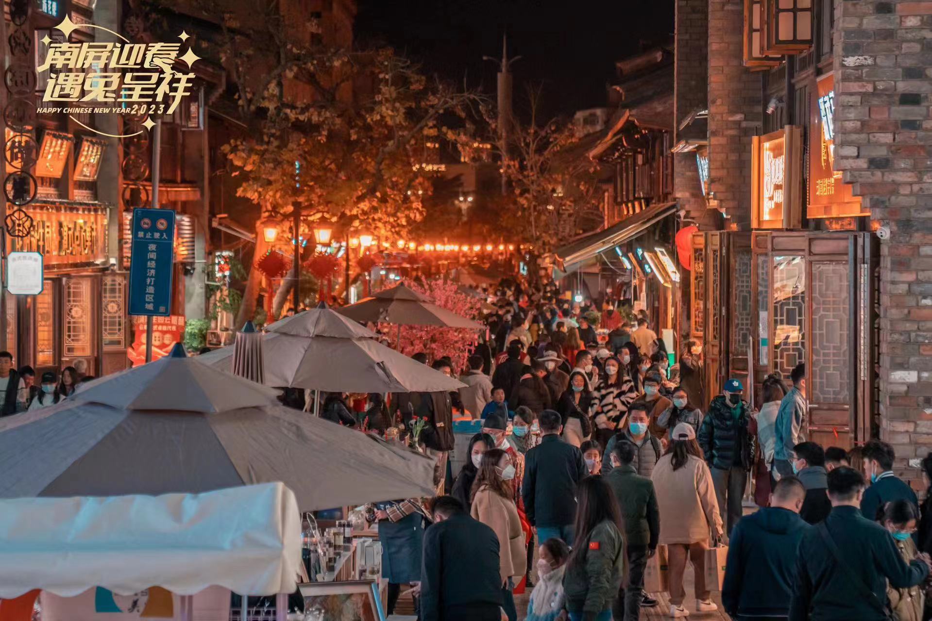 1月14日 起,“南屏迎春·遇兔呈祥”新春系列活动接连上演,开启了“过年模式”,不仅有囊括云南好物的市集和看遍春城花植的花街,还新打造了5000多平的美食广场,有吃有喝,可玩可看,让不少人感慨“过年的感觉又回来了。”