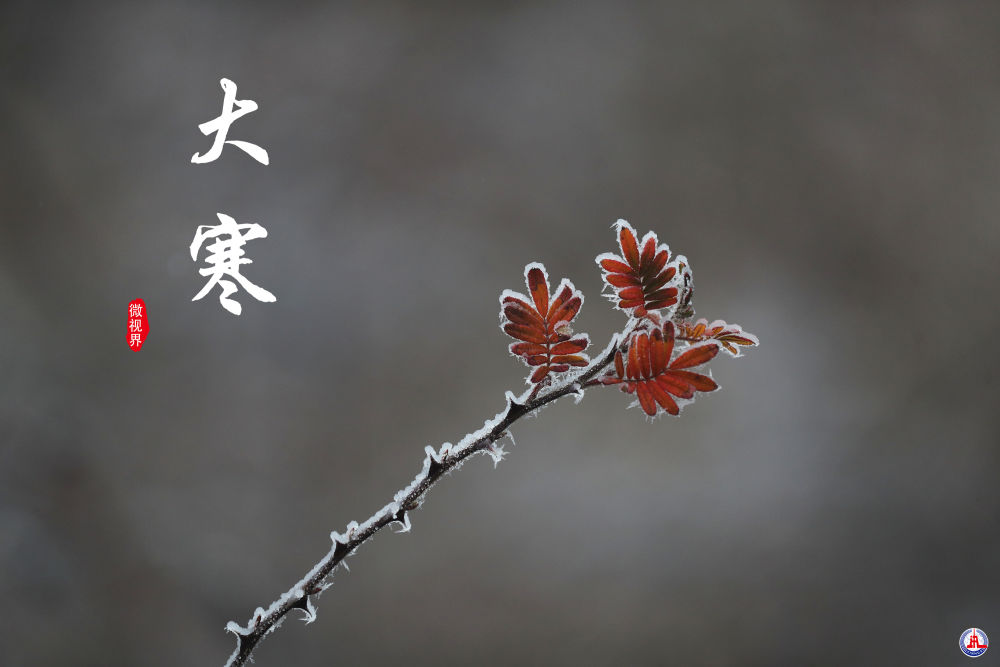 ↑江苏省连云港市,野生小红果上挂着冰。新华社发(王春 摄)