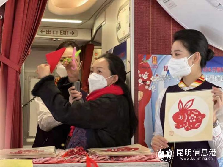昆明信息港讯 金虎辞旧岁,玉兔报新春。2023年春节,昆明市文化和旅游局与祥鹏航空联合推出“新春·云上非遗”主题航班活动,把与春节有关的昆明非遗项目带到飞机客舱。春节期间,乘坐祥鹏航空往返昆明的旅客们在飞机旅途中将度过一个传统年味十足的春节,昆明市的非遗传承人将带着旅客们一起剪窗花、贴福字、品糕点、饮香茶、送吉祥,感受昆明文旅为游客送来的新春祝福,推介大美昆明诗情画意、绚丽多姿的文旅资源。