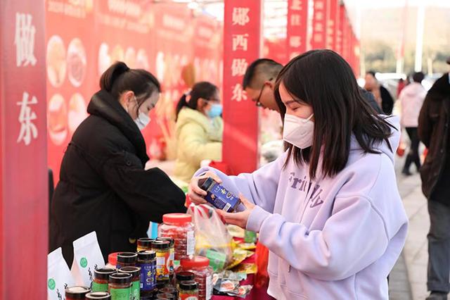 “从前,买年货要东奔西跑。今年,这里的山货节什么物品都有,一站式就买够了。”正在挑选香菇酱的王秀接过话茬。