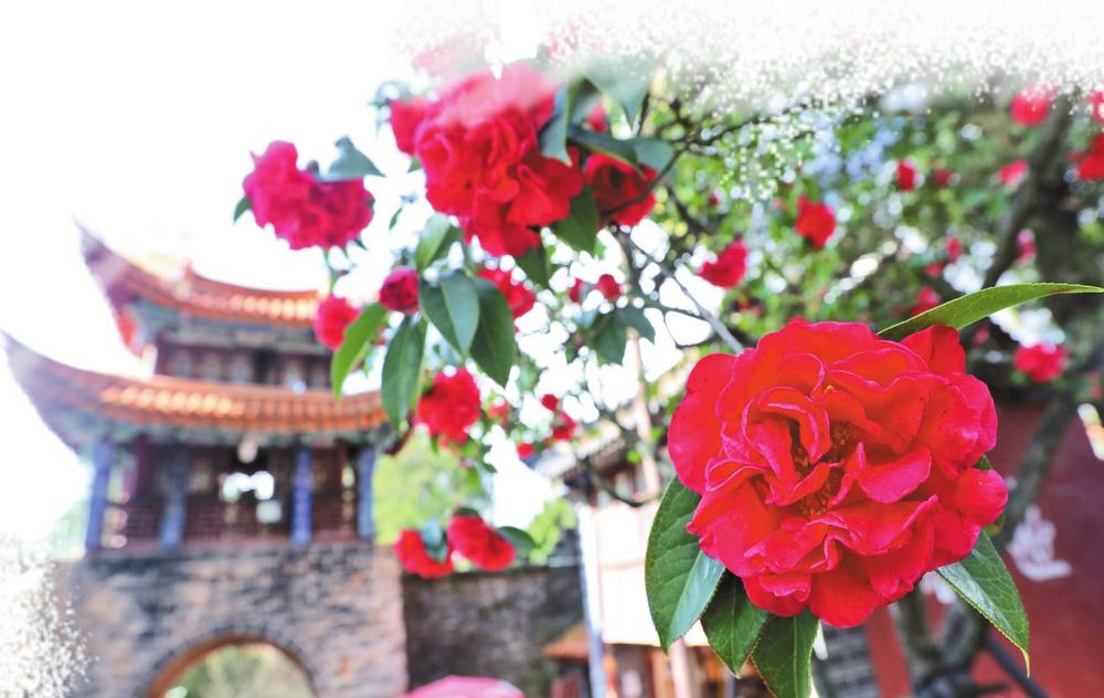 春节期间,正值金殿第三十五届茶花展,1200多个品种、40余万株茶花满山怒放、锦枝纤柔,尽显“云南山茶甲天下”的风采。(云南日报 记者余红 熊明/文 杨峥 陈飞/图 )