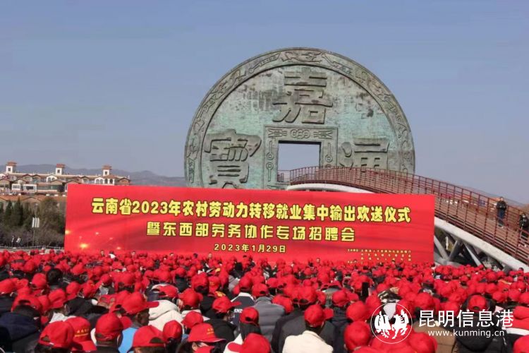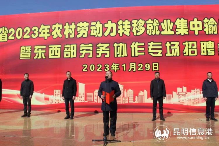 昆明信息港讯 记者江枫 1月29日,云南省2023年农村劳动力转移就业集中输出欢送仪式暨东西部劳务协作专场招聘会在会泽县举行。