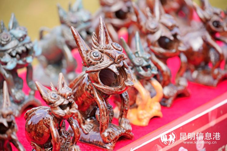 非遗文化展示区则展示了菱角、剪纸、瓦猫、刺绣、草编、扎染等非遗手工艺品,非遗传承人纷纷现场秀“绝活”,吸引了在众人围观,争抢着拍照、录像。“非遗大师们太厉害了。我是外省的,第一次看到呈贡的瓦猫,感觉非常有趣,感受到了呈贡非遗的魅力。”现场观看演出的广东市民王女士说。