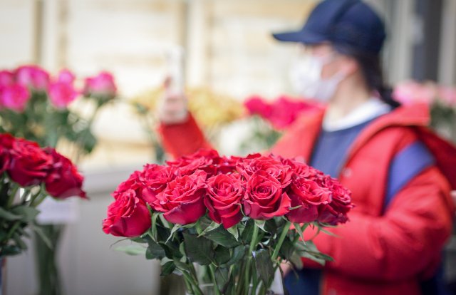 顺城负一层的花店店员们忙得不可开交,“这几天来预订花束的客人很多,这些打包好的等明天客人来取,大部分都是以玫瑰为主,也有少数以满天星为主的花束。我这里还有十来个订单需要装饰。”说完,店员重新投入到工作中。