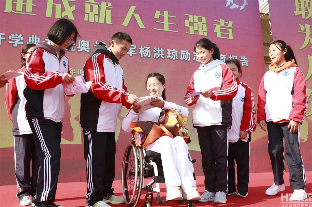 2月13日,会泽县茚旺高中举行春期开学典礼暨励志报告会,邀请2022年云南省残奥冠军杨洪琼到现场为茚旺师生作励志报告。