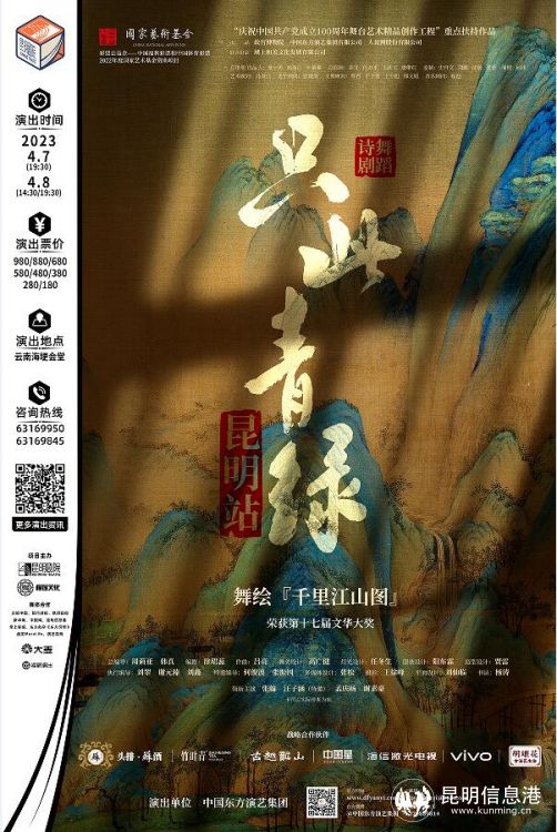 昆明信息港讯 记者邓国梅 舞蹈诗剧《只此青绿》——舞绘《千里江山图》将于2023年4月7日至8日在云南海埂会堂上演,2月21日11:18分将在昆明剧院官方商城、大麦网、猫眼网同步开票!官方售票渠道已全面开启,让我们共同期待四月飞花的春城入画千里江山!