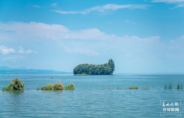 继续往南,一只憨态可掬的“鲸鱼”浮现在滇池湖面。岸边村庄青瓦白墙,绿树环绕,这里是滇池南岸的晋宁海埂村。