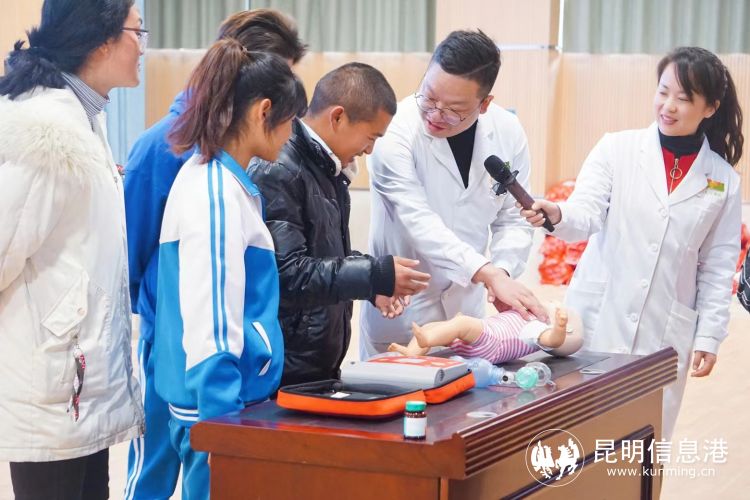 昆明市儿童医院急诊创伤外科主任胡熙及医护团队给两所学校师生带来了情景剧式的科普宣讲,用通俗易懂的语言讲解被宠物咬伤、颅内损伤、骨折、外伤、心肺复苏术、伤口包扎如何处理等内容,并对心肺复苏和外伤处理进行了实操演练,同学们都积极参与实操互动,学习意外伤害自救互救知识。