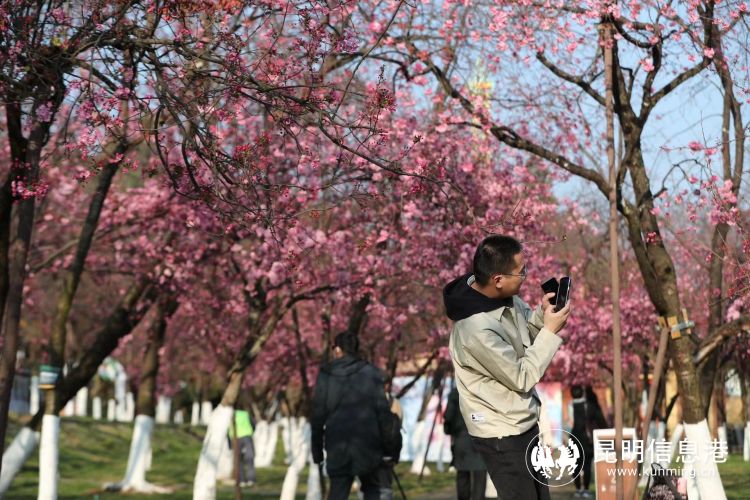 虽然还未至盛花期,但园区内已迎来不少游客提前“尝鲜”。前来赏樱的王女士介绍道,自己每年3月份都会到圆通山看樱花,今天是专程陪朋友一起来,准备错开人流拍几组樱花写真。“圆通花潮在昆明几乎人人都知道。”第一次参加樱花节开幕的周先生表示,自己每年都会来看樱花,今年特别等到樱花节开幕式的时候来,现场的滇金丝猴摄影作品展和非遗展都为活动增色不少。