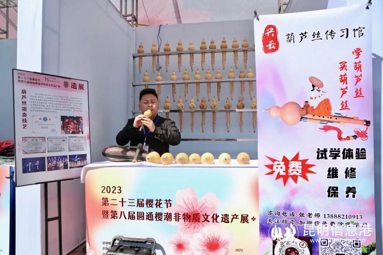 在昆明动物园中心区及樱花区八角亭“非遗展示馆”内,设置有糖画、面塑、非遗唐菓子、剪纸展示区,非遗传承人们妙手生花,几下便勾勒出栩栩如生的糖画、面人、侧影剪纸,制作精致的非遗唐菓子引得来往游人驻足观看。葫芦丝展区也颇受游客关注,宛转悠扬的葫芦丝声声入耳,以声传递云南传统乐器之美。而滇派刺绣、锦粹服饰、逸品生香、掐丝珐琅彩画、乌铜走银等精工巧作,也用精巧构思、精湛手艺展现了非遗传承人们的匠人匠心。市民游客可于3月1日至4月9日前往展区观展。