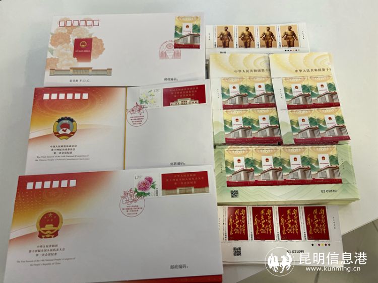 昆明信息港讯 记者甘凌菲 通讯员李芝璇 为庆祝全国两会胜利召开,3月5日,中国邮政《中华人民共和国第十四届全国人民代表大会》纪念邮票发行,同日发行的还有《毛泽东“向雷锋同志学习”题词发表六十周年》纪念邮票,两套邮票都饱含了“为人民服务”的理念。