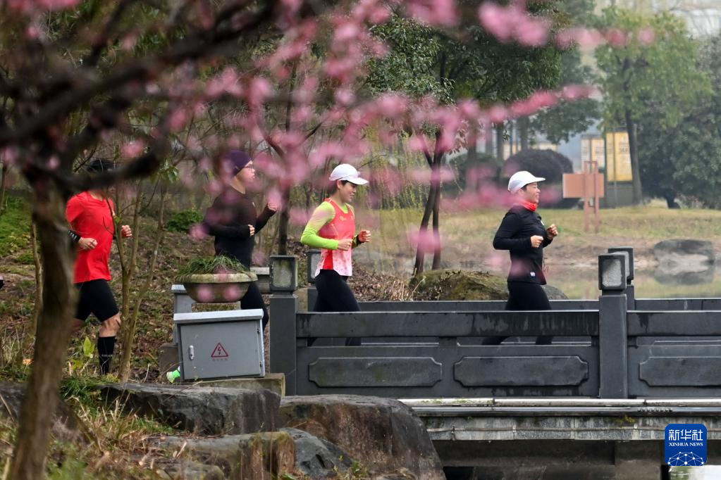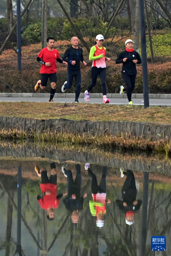 3月1日,跑步爱好者在浙江省宁波市奉化区仁湖公园晨跑。新华社记者 黄宗治/摄