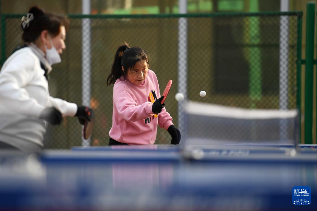 3月3日,市民在甘肃省兰州市体育公园的室外乒乓球场打球。新华社记者 陈斌/摄