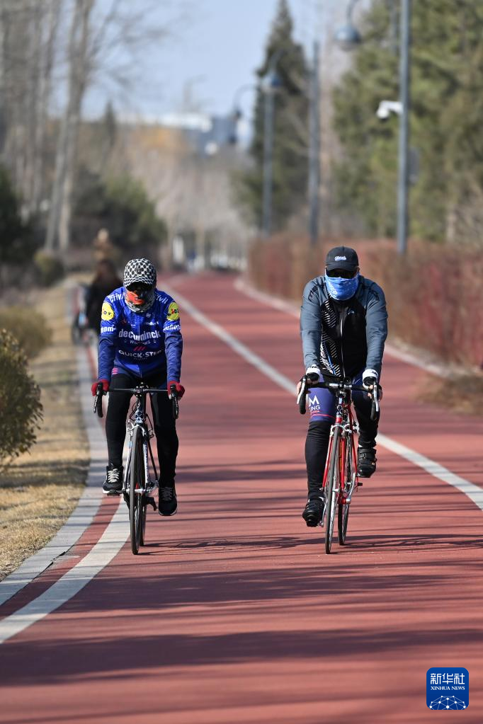 3月2日,市民在太原滨河自行车道骑行。新华社记者 杨晨光/摄